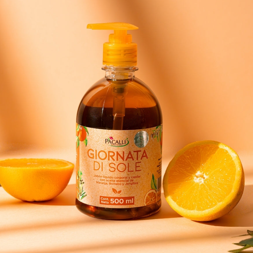 Lauril Éter Sulfato de Sodio, Lauril Sulfato de Amonio, Agua, Cocamidopropil betaína, Amida de coco, Glicerina, Aceite hidrogenado de Castor, Extracto de Romero (Rosmarinus officinalis), Extracto de Jengibre (Zingiber officinale), Aceite esencial de Naranja (Citrus sinensis), Sorbato de potasio (y) Benzoato de sodio (y) Alcohol Bencílico, Aceite esencial de Romero (Rosmarinus officinalis), Aceite esencial de Jengibre (Zingiber officinale).