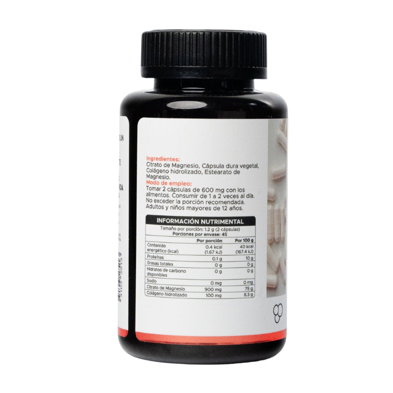 Citrato de Magnesio, Cápsula dura vegetal, Colágeno hidrolizado.