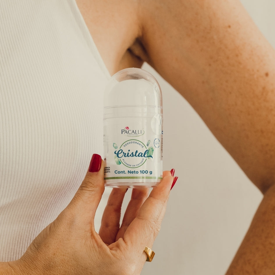 Retire el cristal empujándolo hacia arriba desde la base, humedezca con el agua y aplique generosamente sobre la piel en cada axila. Coloque en su envase después de su uso.