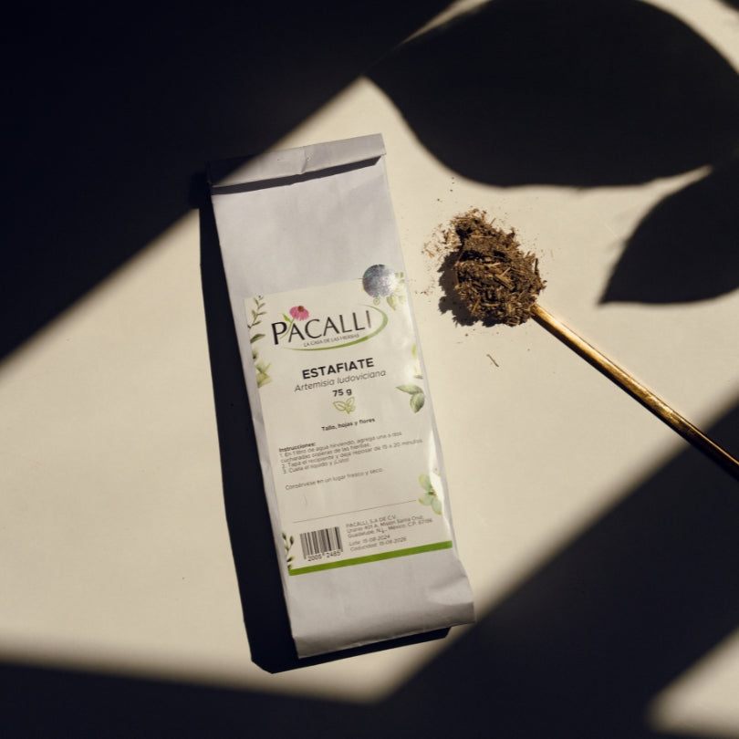 Estafiate (Artemisia ludoviciana) tallo, hojas y flores.