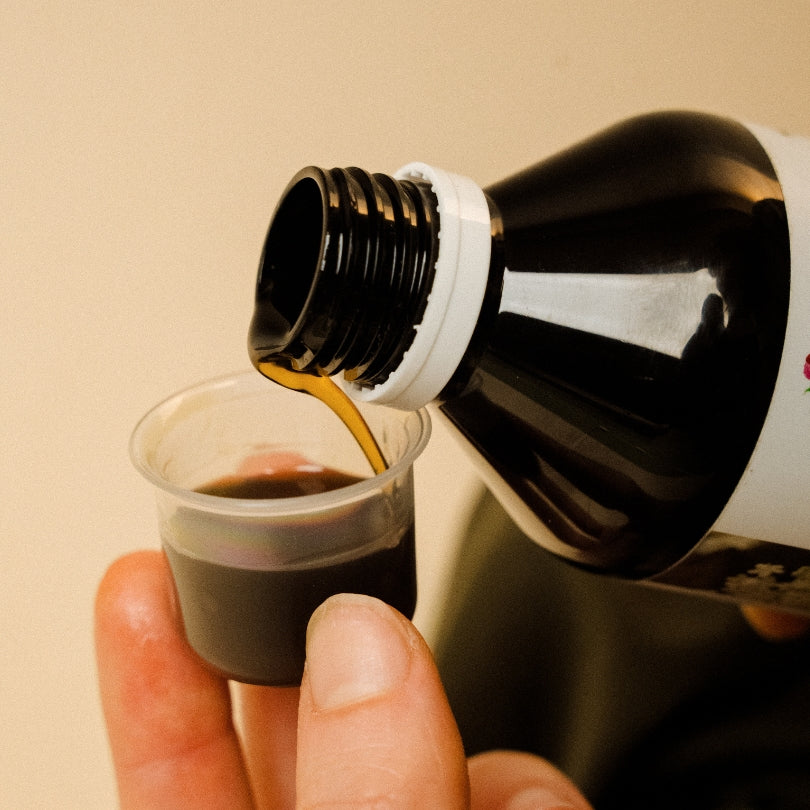 Miel de abeja (Apis mellifera L.), Extracto fluido de flores de Saúco (Sambucus mexicana Presl.), Extracto fluido de flores y tallo de Gordolobo (Gnaphalium oxyphyllum), Extracto fluido de hojas de Eucalipto (Eucalyptus globulus), Extracto fluido de hojas de Toronjil (Melissa officinalis) y Agua desmineralizada, Propilenglicol, Etanol 70 %, Extracto fluido de la planta completa de Menta (Mentha piperita).