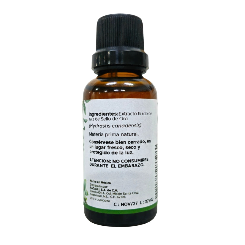 Extracto fluido de raíz de Sello de oro (Hydrastis canadensis).